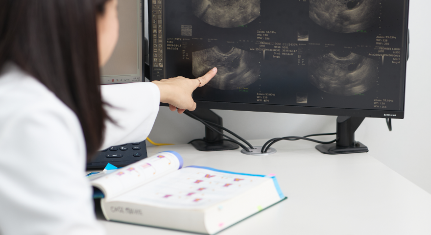 자궁난소초음파검사로 자궁근종, 선근증, 자궁내막증 및 난소종양 등의 질환 여부를 확인합니다.